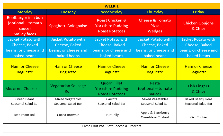 Below is an example of the choice of dinners that children can have. For the full school dinner choices, please access the menu download below.